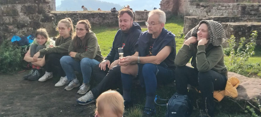So kam es, dass kurzfristig eine Sektprobe am Samstag, den 11.10.24 auf der Burgruine Lindelbrunn von den Edenkobenern im Zeichen der Verbundenheit geplant wurde. Der Vorsitzende des CVJM Schifferstadt, Bernhard Christ und die Mitglieder ließen sich von Bernard Scherrer aus Edenkoben die 7 Editonen der Sektkellerei Schloss Wachenheim näher bringen, die Sekte wurden besprochen und verkostet. Bei strahlendem Sonnenschein war dies ein schönes Event der ehrenamtlichen jungen Helfer und ein Dankeschön für ihr Engagement bei Jugendfreizeiten.
